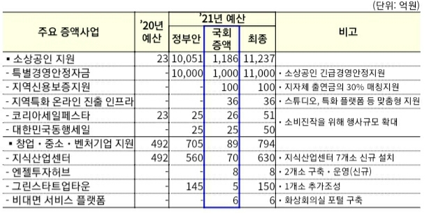 2021년도 예산, 국회 본회의 의결·확정, 2021년 예산 국회증액 주요내용은?